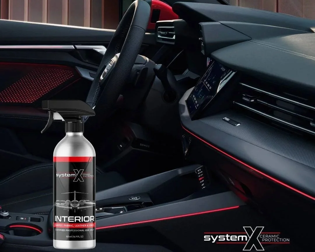 System X Textile Protection: Advanced protection for carpets, cloth seats, and fabric surfaces. Helps repel spills, dirt, and everyday messes while making maintenance cleaning faster and easier.